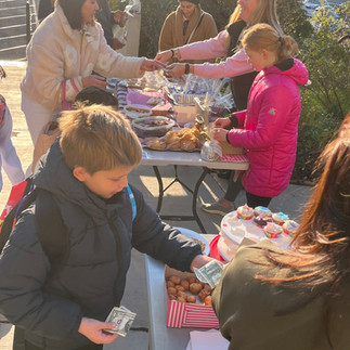 Our first grade raised $1,754 at their bake sale Friday for first responders and victims of the LA fires—and they had lots of help. They donated the proceeds to World Central Kitchen, which provides freshly made meals to communities impacted by disasters. A delicious assortment of baked goods—brownies, cookies, cakes and cupcakes, persimmon pudding and zucchini bread, and more—was generously provided by families and current and former staff members.